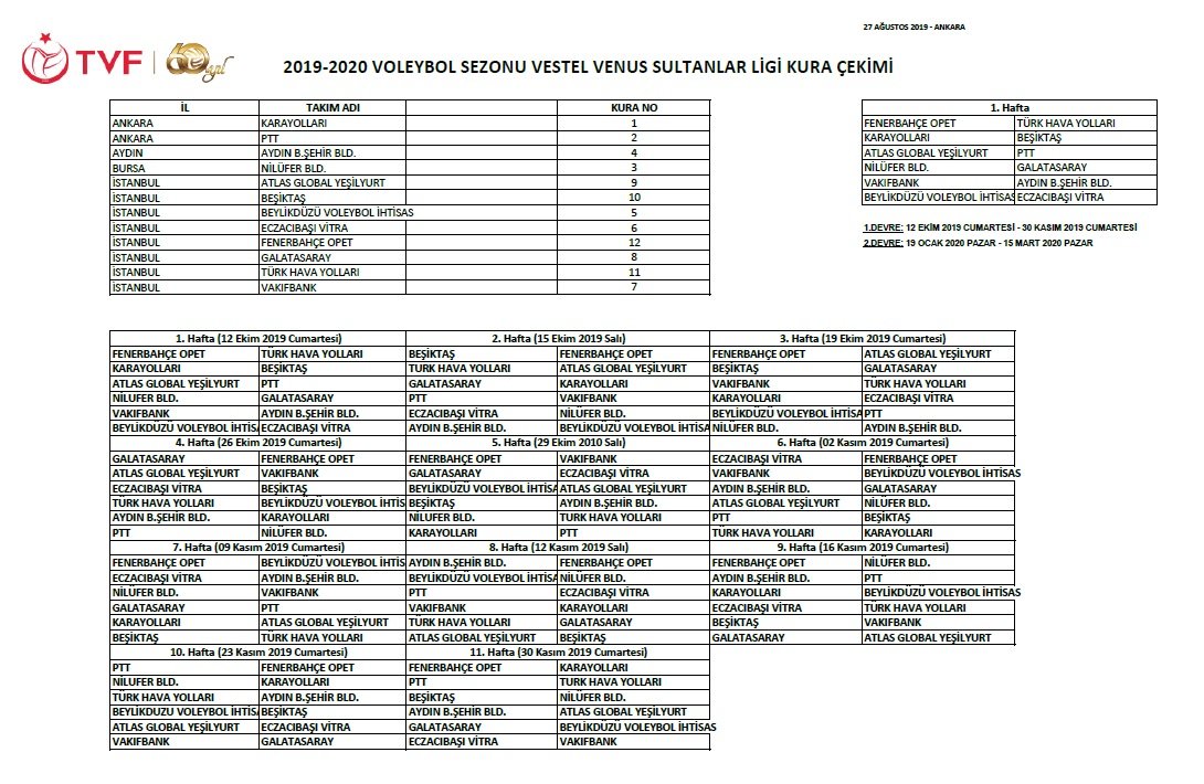 Sarı Melekler’in 2019-2020 Sezonu Fikstürü Belli Oldu.