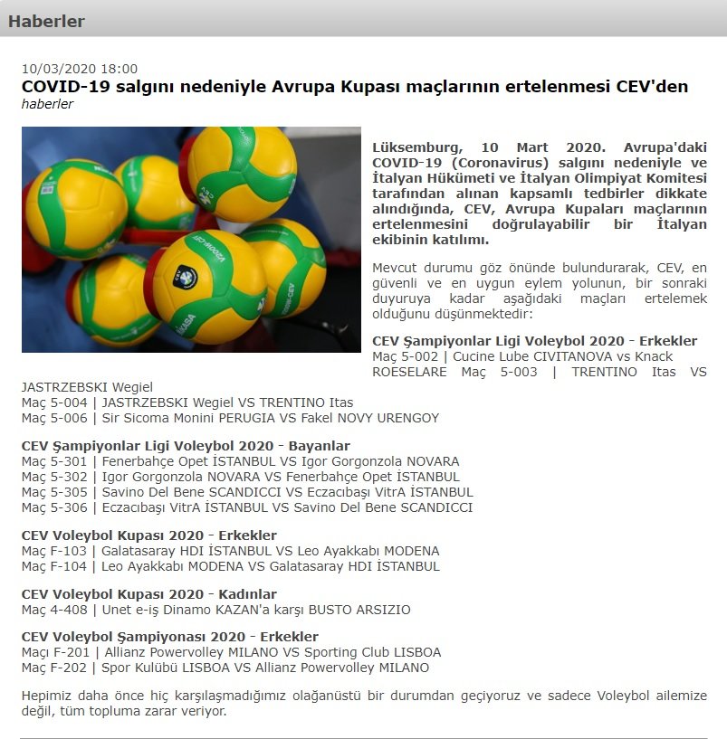 06.03.2020 günü ise Kulübümüzün resmi internet sitesinden yapılan açıklamada CEV’in ertelenen maçları 18-19 Mart tarihlerinde arka arkaya iki günde Slovenya’nın Maribor şehrinde oynatacağı ve bu turun tamamlayacağını duyurmuştu.