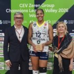 Fenerbahçe Medicana Kadın Voleybol Takımımız, Cev Şampiyonlar Ligi B Grubu 5. maçında konuk olduğu Portekiz temsilcisi Benfica takımını 20-25, 29-31 ve 17-25’lik set skorlarıyla 3-0 mağlup etti. Maça Hande, Ana Cristina, Korneluk, Aslı, Yaasmeen, Arelya ve libero Gizem kadrosuyla başlayan takımımızda yedek oyuncularımızdan Milenkovic, Arina ve Alessia Orro’da süre aldı. Maçı 18 sayıyla tamamlayan Ana Cristina maçın en skorer oyuncusu olurken aynı zamanda da maçın en iyi oyuncusu seçildi. Takımımız bu sonuçla grubunda liderliği garantiledi.